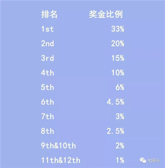 奖金具体如何分配与排名息息相关,按照分配规则,TOP2选手几乎瓜分了奖金的一大半。