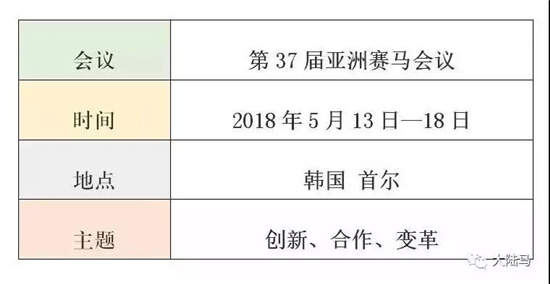 5月13日至18日,第37届亚洲赛马会议将在韩国首尔举行。本次会议将以“创新、合作,变革”为主题,为期近一周,届时亚洲赛马联盟成员及来自六大洲的赛马机构代表将聚首一堂,出席这项大约每两年举行一次的会议。