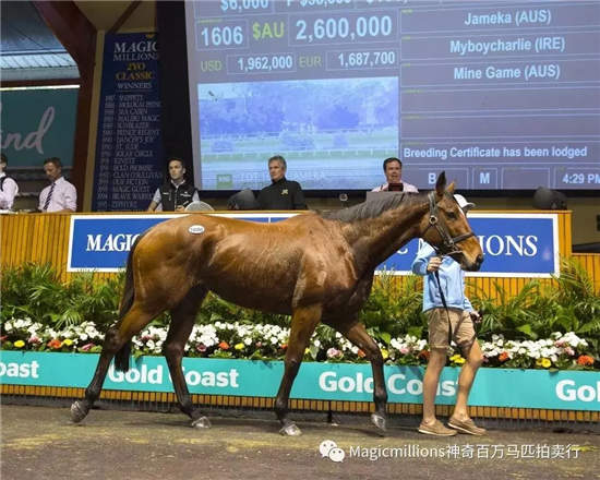 6月1日下午两点,全球著名拍卖行神奇百万黄金海岸国家种母马拍卖会正式结束,这次长达一星期超过1000匹母马的四日拍卖会,可算是完美落幕!最终有超过九匹超过100万澳元,最高价是以$2600000(折合人民币超过1600万)卖出的多项一级赛长途冠军马后“珍米嘉” (Jameka)!