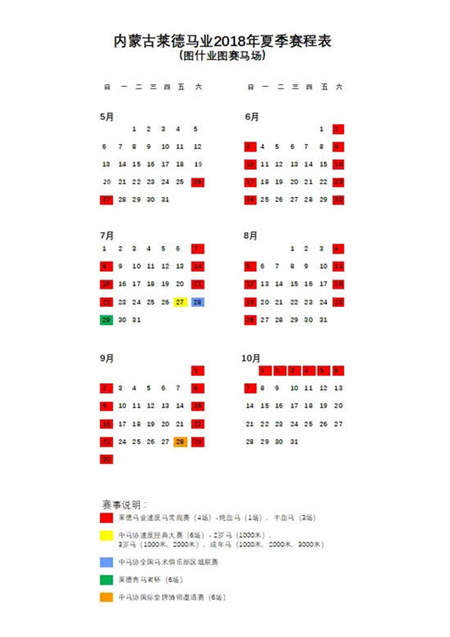 中国内地赛马也不甘示弱,内蒙古莱德马业2018年夏季赛程表将举行两个赛马日,山西玉龙、香港沙田等将多地同时举行重要赛事,共烹赛马大餐。