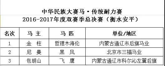 下午17:00,中国马会会长贾幼陵宣布:“‘上东壹号’中华民族大赛马•传统耐力赛2016-2017年度双赛季总决赛(衡水•安平)开赛”!经过30多分钟的激烈角逐,冠军产生。