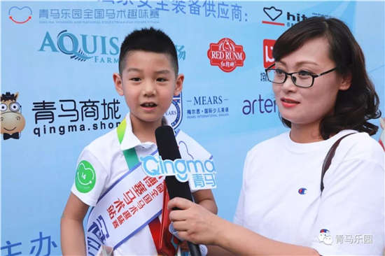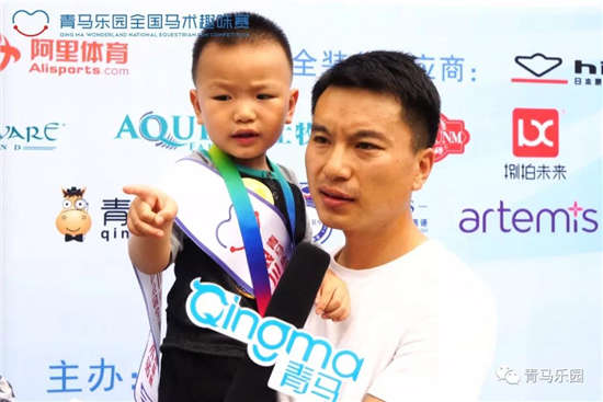 在今天获得趣味亲子赛A组冠军的是只有三岁的王子旭小朋友,他非常骄傲地说,青马乐园的比赛是他第一次参加比赛,也是第一次和马有这样零距离的接触,所以很开心!