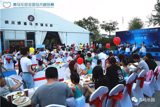 在比赛结束后的颁奖晚宴上,青马乐园赛事的主办方大陆马CEO李鹏向博塞马术俱乐部董事长何向东颁发了“青马乐园优秀赛事承办机构”牌匾,这个荣誉并非每站赛事的承办方都可以获得,而是综合赛事筹备细则、俱乐部在当地的影响力、参赛骑手和家庭的反馈等指标综合评定。这足以见得青马乐园银川站举办的非常成功!伴随着优雅的古典乐,家长和孩子们一起享用晚餐,场面十分温馨。
