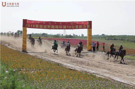 2018莱德越野障碍环翰嘠利沙湖10公里耐力赛的赛道是集沙地、草原为一体的环湖赛道。赛道途经翰嘠利沙湖,湖面开阔秀丽,湖区景致独特,民族风情浓郁,吸引众多游客前来一睹赛况。赛程10公里,来自全旗的50名骑马爱好者报名参赛。