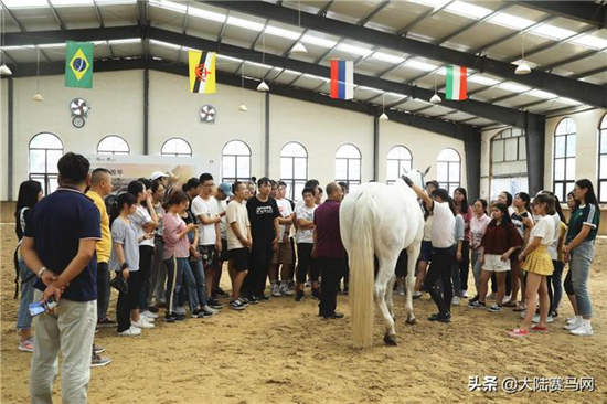 大陆赛马网讯 7月11日下午,中国农业大学动物科学技术学院实习实践教学基地授牌仪式在北京纵横马术俱乐部举行,此外双方还达成多项战略合作协议。中国畜牧兽医学会马学分会理事长、中国马业协会副会长、中国农业大学动物科学技术专业教授韩国才,中国畜牧兽医学会马学分会副秘书长李平岁,中国农业大学副教授王忠,副教授张建云,副教授张炳坤,纵横马术董事长贾增凯等莅临现场出席仪式。中国农大的120多位师生现场见证,并在专业教练指导下对纵横马术实习实践基地马房、场地等设施进行了参观,并且进行了一次别有意义的马背体验。