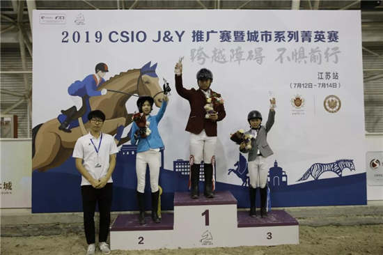 青马网(www.qingma.org)讯 7月14日,历时三天的2019 CSIO J&Y推广赛暨城市系列菁英赛江苏站的比赛在江苏海澜飞马水城圆满落幕。在60cm级别U25争先赛的比赛中,代表亳州市青少年马术队的何瑞阳搭档大白马以39.84秒问鼎冠军;亚军由南京舞马者冠军骑士学院的姚顺予和赛驹linda以40.08秒摘得;安徽震龙小学青少年马术队的黄恩泽搭档vandiamo以41.28秒获得第三名。