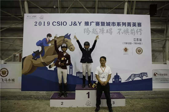 青马网(www.qingma.org)讯 7月14日,历时三天的2019 CSIO J&Y推广赛暨城市系列菁英赛江苏站的比赛在江苏海澜飞马水城圆满落幕。在105cm公开组挑战赛的比赛中,来自杭州易骏马术俱乐部的李依桦搭档赛驹芒果以50.42获得季军;随后她和第二匹赛驹cool girl以49.81秒将冠军奖杯也收入囊中。亚军由安徽震龙小学青少年马术队的陈雨辰搭档candymum以49.86秒获得。