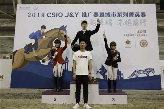 青马网(www.qingma.org)讯 7月13日,2019CSIO J&Y推广赛暨城市系列菁英赛江苏站第二日比赛在江苏海澜飞马水城举行。110cm少年组菁英杯的比赛中,经过一轮比赛和附加赛的激烈角逐,来自上海市马术队的王桢和赛驹Lax最终夺得冠军;亚军由上海恒骓马术训练馆的陈瑞欣搭档赛驹BARRI CHELLO获得;杭州易骏马术俱乐部的李依桦搭档cool girl获得季军。