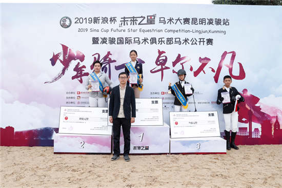2019年7月13日,未来之星马术大赛于昆明凌骏国际马术俱乐部顺利举行。近来一直多雨的昆明在未来之星开赛之日放晴,用久违的阳光照亮小骑士们的舞台。比赛当日,北京马术协会副会长兼秘书长陈彻、昆明凌骏国际马术俱乐部董事长马俊平、昆明凌骏国际马术俱乐部执行董事张艳芬出席并为获奖骑手们颁奖。