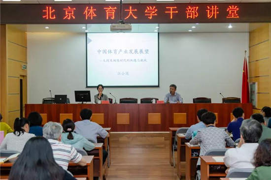 6月4日上午,清华大学公共管理学院院长江小涓教授到访北京体育大学作题为《中国体育产业发展展望——大国及网络时代的机遇和挑战》的讲座。江小涓从习近平总书记关于体育的重要论述引入,对中国体育产业的现状、中国发展体育产业的独特优势、中国面临的挑战、应对的措施四方面内容进行了阐述。江小涓认为,《国务院关于加快发展体育产业促进体育消费的若干意见》的发布是中国体育产业加速的一个里程碑。2014年以来,中国体育产业的增加值明显高出经济的增长速度、GDP的增长速度。大量的普通消费者开始重视专业性和装备。中高端项目开始加速,垂钓、冰雪、骑行、攀岩、马术等体育项目的消费快速增长。