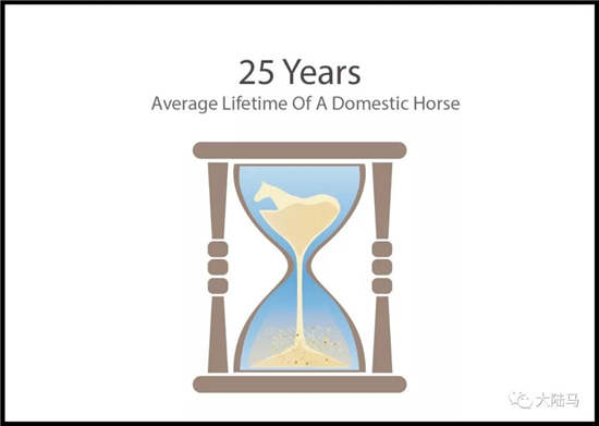 马匹的平均寿命为25年,只有人类寿命的三分之一。
