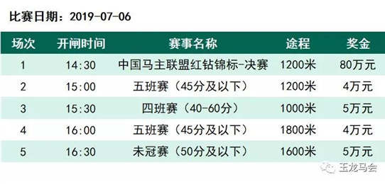 2019年玉龙国际赛马公开赛再次升级,全年共计19个比赛日,将在5月11日至9月28日期间举行,每个赛事日5场比赛,共计95场比赛,总奖金1500万元,场均奖金超过15万元,单场超过100万奖金的赛事目前便已多达七场,今年的单场奖金最高的是高达200万元人民币——中国马主联盟“主席杯”。