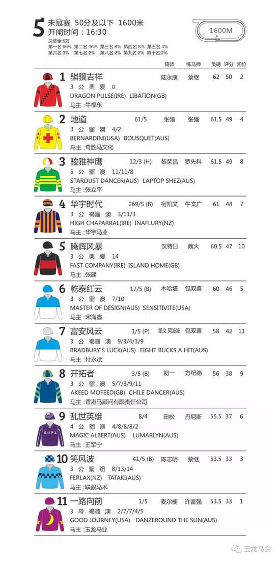 马主:玉龙马业 骑师:麦尔梗 练马师:许富强
