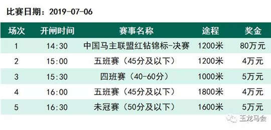 2019年玉龙国际赛马公开赛再次升级,全年共计19个比赛日,将在5月11日至9月28日期间举行,每个赛事日5场比赛,共计95场比赛,总奖金1500万元,场均奖金超过15万元,单场超过100万奖金的赛事目前便已多达七场,今年的单场奖金最高的是高达200万元人民币——中国马主联盟“主席杯”。