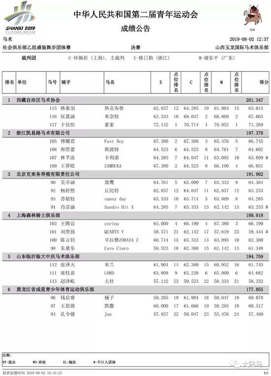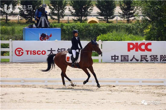西藏自治区马术协会的15岁小骑手于佳怡策骑“素索”在社会俱乐部乙组个人资格赛排名第一,表现非常出色: