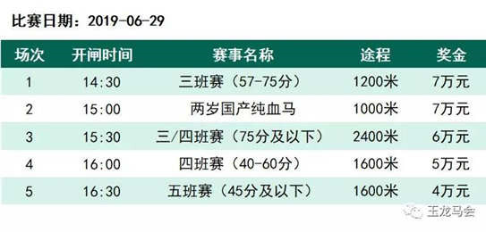 2019年玉龙国际赛马公开赛再次升级,全年共计19个比赛日,将在5月11日至9月28日期间举行,每个赛事日5场比赛,共计95场比赛,总奖金1500万元,场均奖金超过15万元,单场超过100万奖金的赛事目前便已多达七场,今年的单场奖金最高的是高达200万元人民币——中国马主联盟“主席杯”。