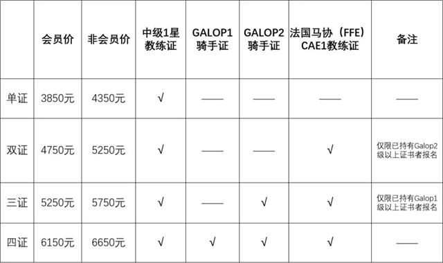 青马网讯 北京马术协会自2014年起开始举办马术教练培训班,为马术行业培养了数百位马术专业人才。协会近期再次推出三证合一中级1星马术教练考级培训班,现将报名相关事项通知如下: