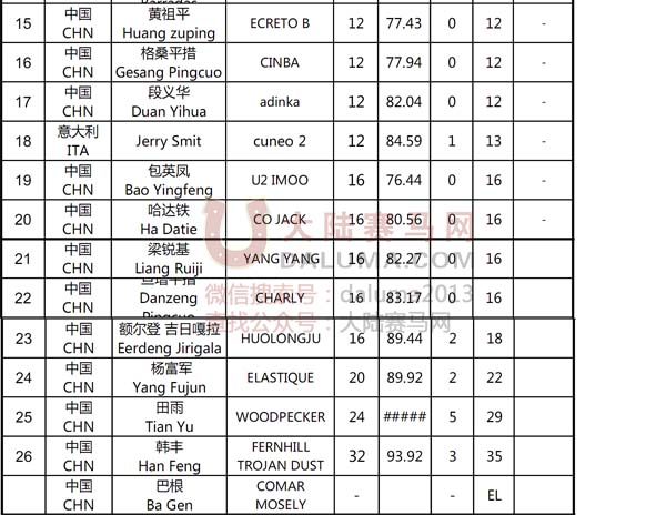 马术世界杯场地障碍中国联赛第一站世界杯赛150CM完全成绩表: