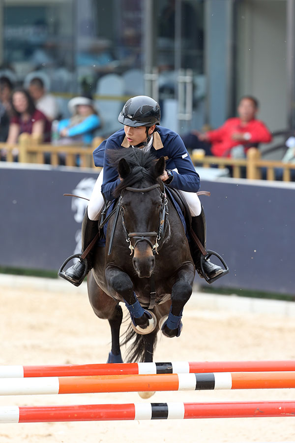 接下来进行的是青少年及马主赛(90-100CM)第二轮的比赛。共有16名青少年骑手和17名马主参与了本场比赛的角逐。来自月河湾队的邢思源延续了前一天的状态,策骑西蒙最终以60秒29零罚分的好成绩完成比赛,经过两轮成绩相加最终排名第一。包括邢思源在内,第一轮共有五名骑手完成了零罚分,克莱务队的奇龙驰策骑luminus 3虽然今天也是零罚分完成比赛,但用时比邢思源稍长(60秒43),最终名列第二。西坞队的王漠驰则以63秒83零罚分的成绩排名第三。排名四至八名的骑手分别是:琪琪木乐,李亦丹,彭伊琳,陈煜和石天洋。