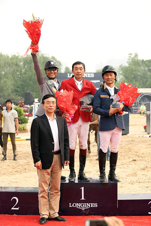 在马主组别的比赛中,作为中国马术标志性人物的老将哈达铁策骑快乐武士发挥出色,最终仅仅用时59秒42完成零罚分,以两轮均为零罚分的好成绩技压群雄赢得冠军。同样也是两轮均为零罚分的骑士联盟队的袁茂栋策骑布卡基只是在第二轮用时上落后哈达铁(64秒34),排名第二。广东金伯乐队的李振强继第一轮零罚分之后本轮也没有打落一道障碍,也是在时间上的差距(65秒03)排名第三。排名四至八名的分别是:陈云波,孙小卫,音克巴依尔,巴根和伊伯拉。国家体育总局自行车击剑运动管理中心马术部主任、中国马术协会秘书长李年喜为前三名骑手颁发了胜利奖杯。