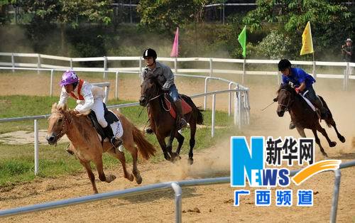 此次参加比赛的赛马中有不少是广西特有的德保矮马,这些矮马短小精悍、步伐灵活、健步如飞。“德保矮马耐力出众,奔跑速度也很快,在竞技方面具有独特优势,”黄金权介绍说。