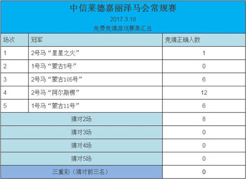 注:本期大陆赛马网与中信莱德嘉丽泽马会排位表场次顺序有所不同,中奖统计按照大陆赛马网3月17日发布顺序为准。