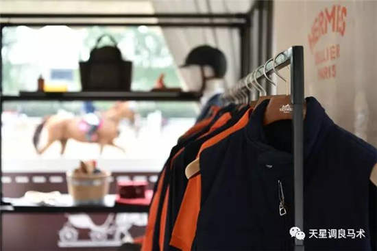 位于热身场地前方的爱马仕展示区为骑手和观众们提供了丰富的装备选择和专业的购买意见,让大家可以随心选购。