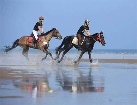 发令枪声一响,赛马如离弦之箭,远远望去仿佛冲入了海天交接线的地方,一副骏马奔腾的画面让人流连。“花黄又新叶”,又是一年新征程,在去年第五届全国名人马主大赛获得第三名的石家庄骑手张磊携爱驹“蝶恋花”今年卷土重来,势不可挡,以压倒性的优势夺得冠军。来自东北佟二堡惠迪雅丹皮草队的王鑫策骑马匹“钢蛋”,紧随其后获得第二名。获得第三名的骑手是来自北京云通马术俱乐部的郭克义,让人敬佩的是郭老今年已经65岁,“正所谓“老当益壮,敢将雄心战六方”,体现了马术运动坚持与拼搏的精神。第四名:四川腾辉马术俱乐部张建,策骑马匹奥利奥。第五名:菏泽承铭马术俱乐部何东,策骑马匹无敌。第六名:北京优骏训练基地杨进伟,策骑马匹:polo.第七名:骑手范谦,策骑马匹小黑。第八名:沈阳JJ滑雪俱乐部高彦兵,策骑马匹:小米。