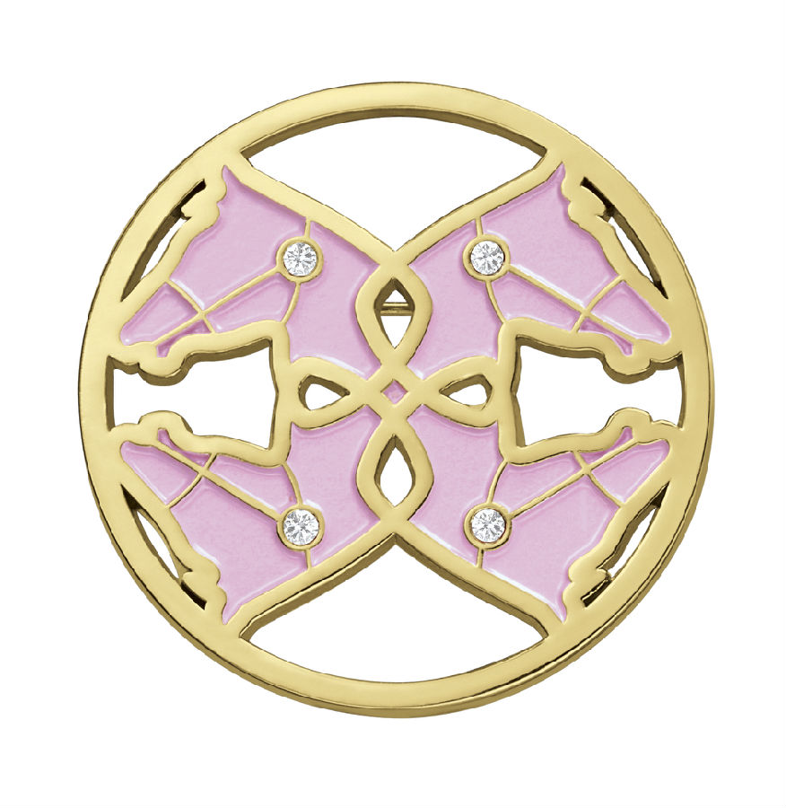 当日焦点赛事“莎莎妇女银袋赛”为香港三级赛,途程1800米,总奖金增加至港币250万元。入场人士可获赠“莎莎妇女银袋日”限量版纪念襟针一枚(图3)。纪念襟针以简洁线条的骏马几何图案为主题,配以闪石及鲜明的粉红及金色色调,突显“莎莎妇女银袋日”时尚、高贵与美丽结集一身的传统;派送至第六场开跑前,数量有限,送完即止。