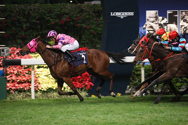 浪琴表国际骑师锦标赛尾关在第八场上演,香港代表潘顿策骑“迎风飘扬”(9号)胜出。