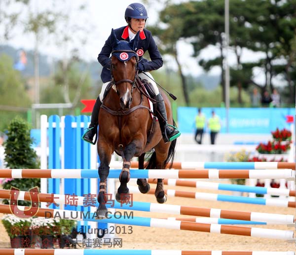 前马会骑术教练吴蓓华表现稳定,协助港队夺得团体铜牌。图为她在场地障碍赛比赛的情况。