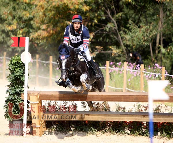 香港马术队中最年轻的何诞华虽首次出战亚运,但表现同样出色。图为他在越野障碍赛比赛的情况。