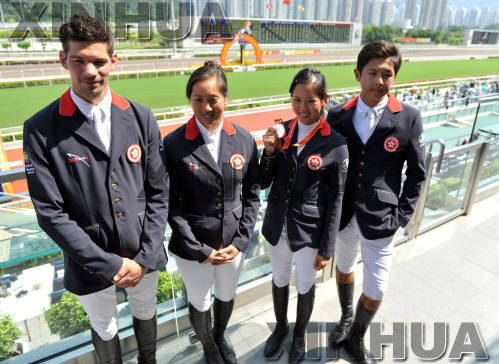 9月8日,香港马术队选手林立信、林子心、赖桢敏及郑文杰(从左至右)合影。