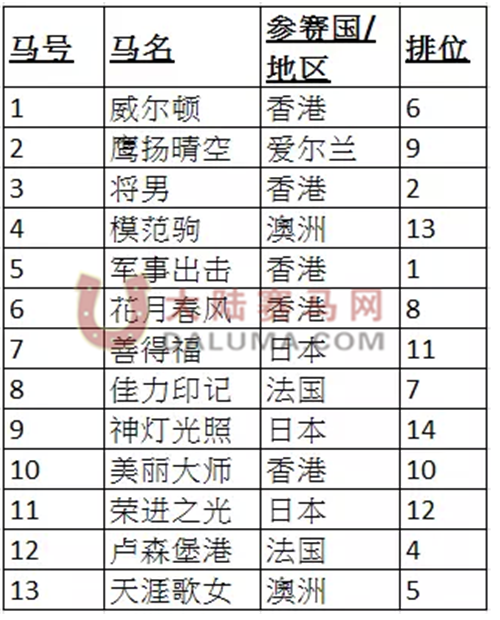 2015浪琴表香港国际赛事马匹排位抽签结果公布