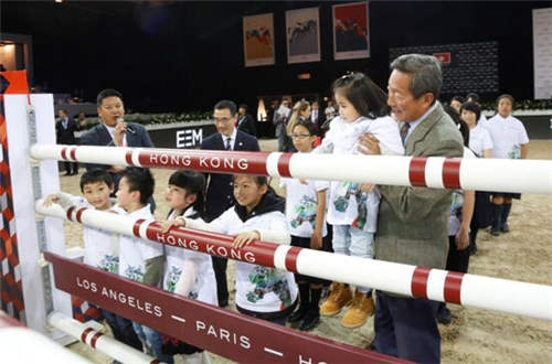 马会今年继续邀请一千六百名学生及基层市民一起体验这项体育盛事,马会主席叶锡安博士和马会董事兼香港马术总会会长利子厚先生,与部分参与者亲身踏足比赛场地,绕场踱步,一同体验大赛气氛。