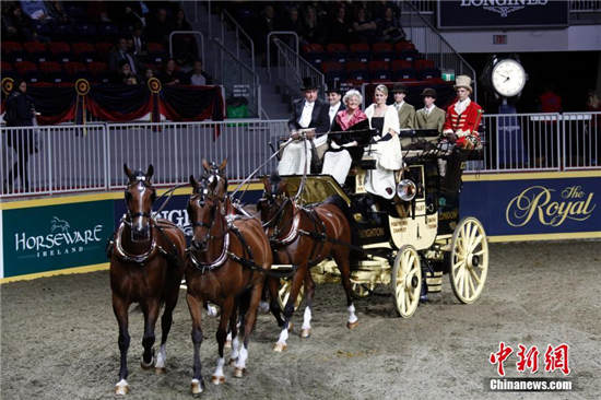 当地时间11月8日,选手们参加复古盛装的马车展示及评比。2017年度加拿大皇家马展正在多伦多举行,多场精彩的马术表演及马术赛事轮番上演。今年的马展从11月3日持续至12日。