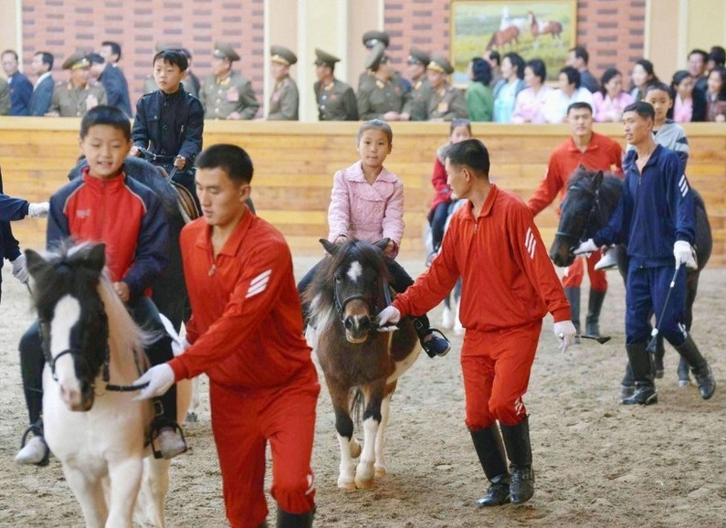 举行了竣工仪式。朝鲜女兵、当地民众、少年儿童等在新建成的美林骑马俱乐部内骑马进行庆祝。