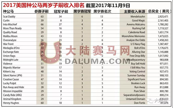 2017年11月,《关于中国从美国输入马的检疫和卫生要求议定书》的正式签署,意味着,中断两年的中美马匹贸易大门终于重启。美国平地赛马以泥地赛为主,而国内基本以沙地赛为主,相较于南半球擅长草地赛的马匹,美国的赛马在适应性可能会更适合国内赛场。大陆赛马网根据美国种公马2017年两岁子嗣的总收入,发布了《2017美国种公马两岁子嗣收入排名》。去美国买马,不妨看看这份“指南”!