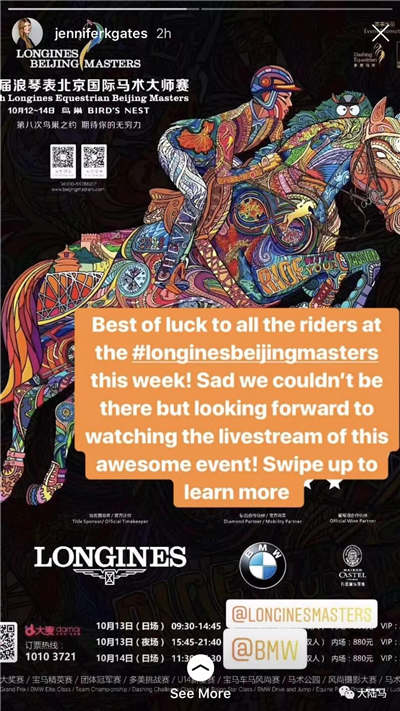 第八届浪琴表北京国际马术大师赛开赛在即,今日,比尔·盖茨女儿詹妮弗·盖茨在社交平台上宣布自己因故无法参赛的消息。她表示自己将继续关注北京国际马术大师赛并收看赛事直播,预祝其他骑手获得好成绩。