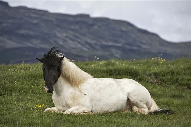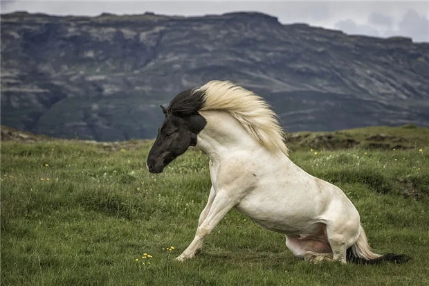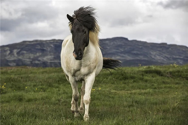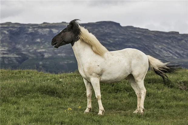 > 冰岛:一匹高头大马亮相,黑头白身英姿