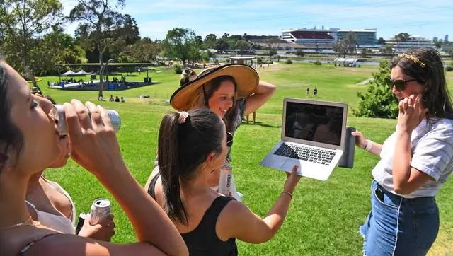 大陆赛马网讯 每年11月第一个星期二,是澳大利亚一年一度盛大的墨尔本杯赛马节。但是今年受新冠肺炎疫情影响,墨尔本杯赛马节闭门举行。在澳大利亚墨尔本,人们在赛场附近的公园用电脑、手机观看墨尔本杯赛马节直播。