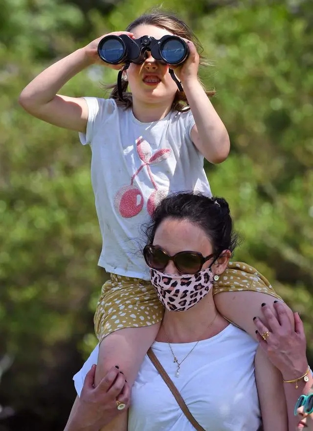 也有人们在一座公园眺望附近的墨尔本杯赛马节赛场,还有小女孩在赛场附近的公园用望远镜观看墨尔本杯赛马节赛况。