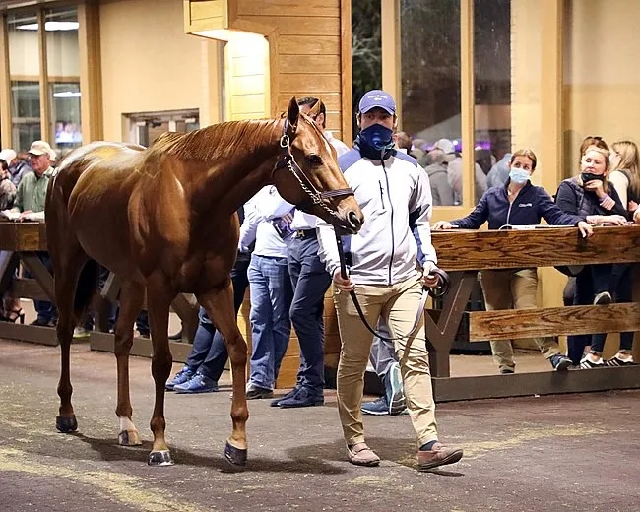 大陆赛马网讯 美国坚兰法西-蒂普顿(Fasig-Tipton)11月拍卖会,多匹雌马进行拍卖。成交价比起周岁马拍卖价为高,已经有多匹可以准备繁殖雌马达7位数字。最重点莫过于曾获得日蚀奖最佳三岁雌马的Monomoy Girl,赢过2018及2020年赢过马者杯雌马大赛,其战绩近乎完美,最后以950万美元成交。买家是Spendthrift Farm,将会在2021年继续在原练马师Brad Cox训练。这次拍卖中平均价565,049美元,中位数20万美元,当中有22匹超过100万美元。包括刚跑过育马者杯的Rushing Point、Uni、Got Stormy等。