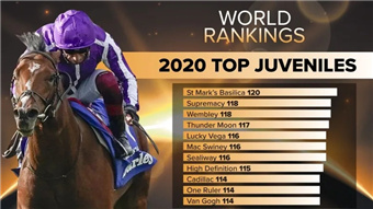 随着2020年年终国际评分公布后,欧洲也公布了两岁马评分。不过今年评分大缩水,最高评分是120分的St Mark’s Basilica,这匹岳伯仁麾下的马匹赢出了一级赛杜何斯特锦标(Dewhurst Stakes)。接着是Supremacy以及Wembley两马。至于赢过两岁马一级赛冠军的Thunder Moon以及Lucky Vega评为117分及116分。2021年叶森打吡大赛大热门High Defintion同样评分116分。