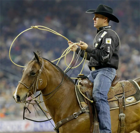 美国传奇牛仔Trevor Brazile,职业牛仔竞技协会唯一一名职业生涯收入达到7百万美金的牛仔,26届世界冠军,其中包括14届世界全能冠军 (2002-04, 2006-15, 2018),8届擒小牛世界冠军(2006-07,2011,2013-15,2019-20),3届单人套小牛世界冠军(2007,2009-10)和1届团体套小牛世界冠军(2010)。