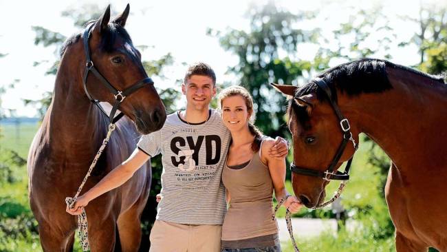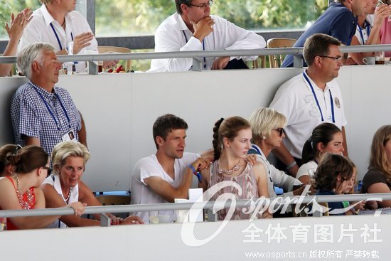 7月23日,2014年德国亚琛世界马术节举行,拜仁球星穆勒携马术运动员娇妻现场观战。