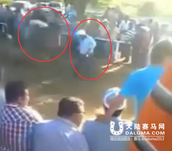 上述视频是一名国外马迷在拍摄赛马比赛,无意中拍到这起令人不胜唏嘘的命案,不过并没有显示事发国家与地点。影片中,戴着帽子的男子原本站在跑道旁观看比赛,当第一匹马抵达终点时,他发现自己投注的马匹嬴得冠军,于是开心到走进跑道内,没想到随后就被另外一匹马给撞上,撞击力量大到将他整个人撞出镜头,最后宣告伤重不治。