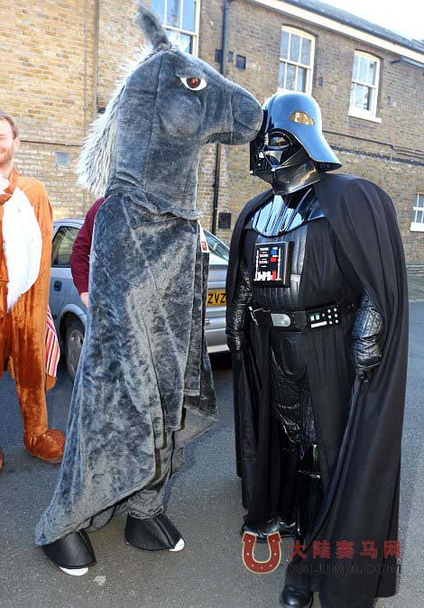 近日,大伦敦地区的格林威治皇家自治市就上演了一场别开生面高度刺激的“哑剧马”比赛。今年第五届哑剧赛马比赛还加入了《星球大战》的科幻小说主题活动,英国74岁著名的赛马评论员John McCririck还亲临现场进行解说,他用着典型的英式幽默说:“我33年职业生涯里最辉煌的时刻就是在伦敦哑剧赛马比赛中。”
