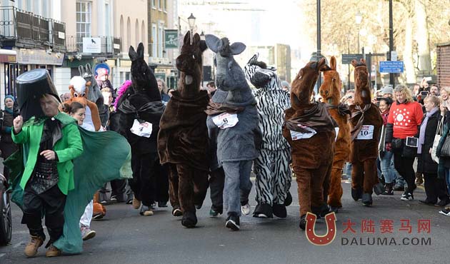 别以为只有赛马才受英国绅士的欢迎,“哑剧马”也可以!随着马拉松长跑在祖国大地风起云涌,成为各个城市在文化体育领域必上的一道“菜”,人家英国人已经把真正的“马”拉松比赛搞到了第五届!