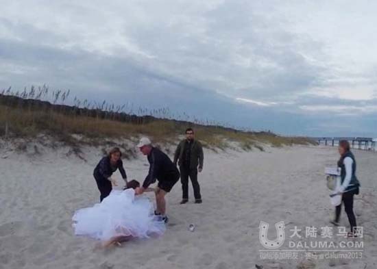 就在近日,加利福尼亚的一位新娘在海滩拍摄婚纱照,现场骑马凹造型,结果马匹似乎不太配合,一路横冲直撞后,新娘被甩下马背,直接扑到在沙滩上。